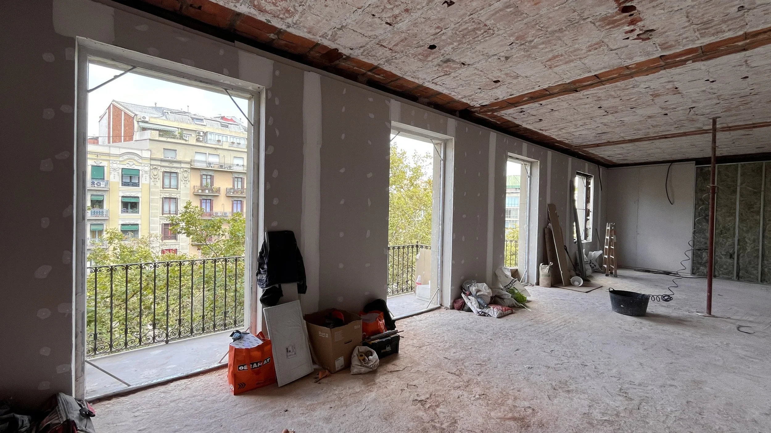 Demoliciones: Retirada de tabiques (si se cambia la distribución), falsos techos, puertas y ventanas antiguas.