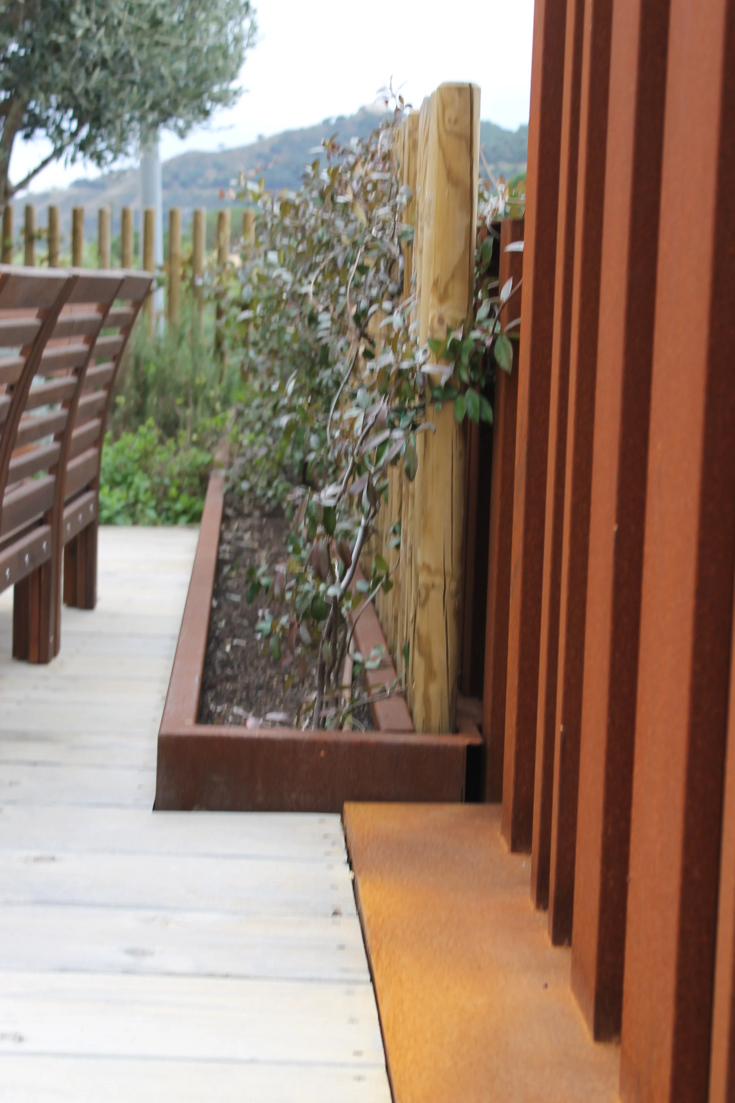 La valla Pi es un valla realizada con acero corten y pensada para delimitar jardines perimetrales que generan un juego de sombras interesantes conseguidas a través de la proporción de diferentes piezas compuestas y seriadas con el número PI. Tanto des del interior como des de la calle aporta una experiencia visual al usuario de la casa como al habitante que anda por la calle y, de este modo, contribuye a mejorar el urbanismo de las ciudades.